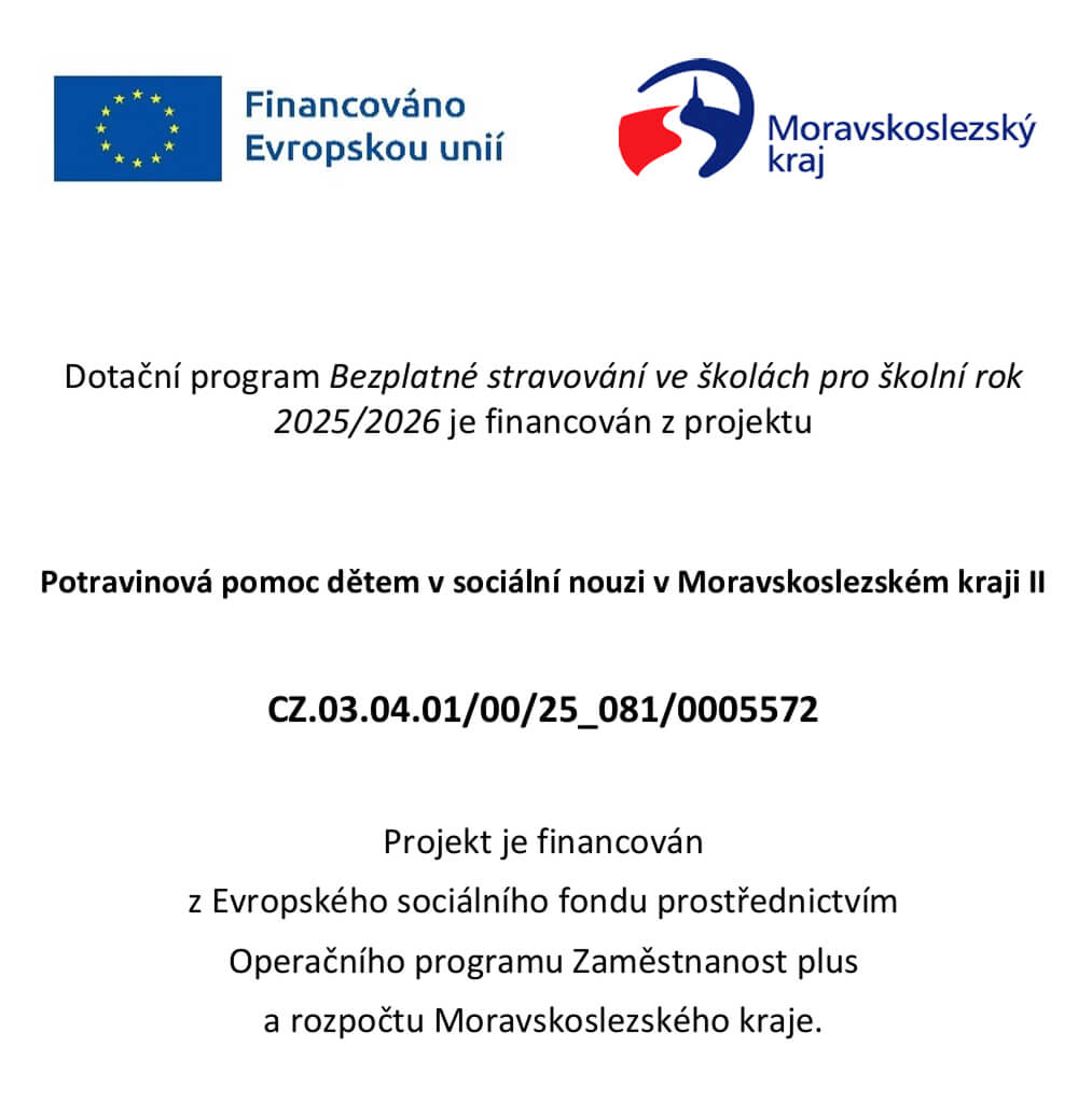 Naše organizace je zapojena do projektu Dotační program Bezplatné stravování ve školách pro školní rok 2025/2026